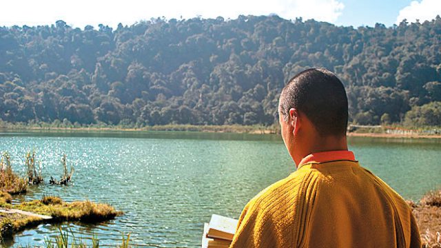 “Look, look, fish!” cried out the father to the rest of the family, which was marching ten steps behind him. The voice of the tourist, everyone. So what if this place was the serene Khecheopalri Lake? So what if there was a monk reciting prayers and feeding the fish in absolute silence? The tourist must point and yell!