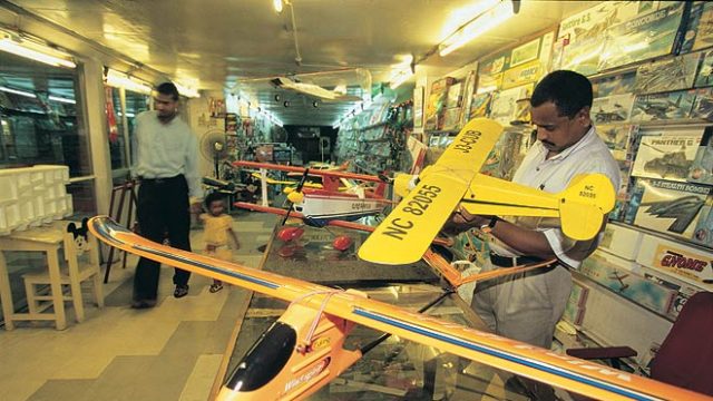 The 1980s saw the opening of an ice-cream parlour and a restaurant inside the toyshop premises (an incredible 10,000 sq. ft. including the mezzanine floor). Both generated sufficient revenue for the toyshop to continue running. As cheap Chinese toys flooded the market, other toyshops on Park Street (remember Paragon?) began to down their shutters. The toy market spread to Gariahat and even to the suburbs—nowadays it is not unusual to see cheap electronic toys sold from a street-side heap or by hawkers in local trains. A small but loyal clientele continued to frequent 1-A Russell Street, to buy toys and have their model airplanes serviced. For the community of aeromodellers in Kolkata, Hobby Centre was—and continues to be—the one-stop-shop, for everything from buying spare parts to repairing a broken wing to acquiring a brand-new craft.
