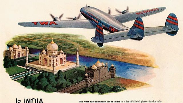 TWA flew thrice a week from New York to Bombay, flying via Europe, North Africa, the Middle East into India and then proceeding to far East, dropping mail en route. Along with Pan Am flights it connected almost all major cities in Europe to the rest of the world. By the late 1950’s the transcontinental route had become the world’s most trafficked route, and the faraway places were just a little more than a day away.