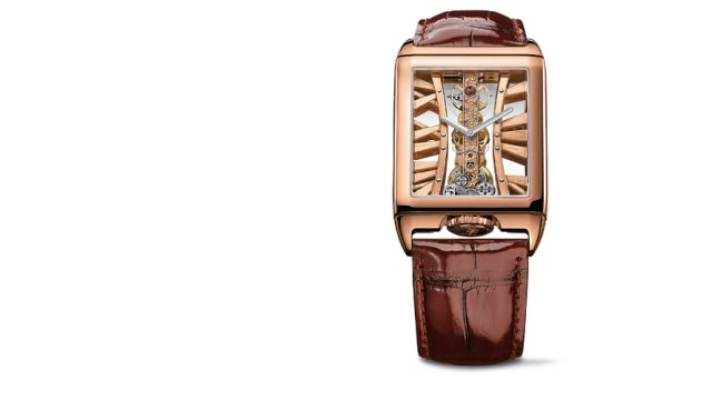 Designer Dino Modolo of the brand Di Modolo, which designs gold and silver jewellery, has revamped the elegant and classic Corum Golden Bridge Rectangle. Unlike the one created back in 1980, the Rectangle is up to 30m water resistant and a far more ergonomic wear. Unveiled during Baselworld 2017, one of the world’s biggest jewellery and watch fairs, this rose gold watch looks opulent, especially with the18-carat gold structures surrounding the dial’s calibre that depicts six roman numerals. These make it resemble an actual bridge. The gold micro structures suspended between the panes of sapphire crystal add to the shine and adhere to the rectangular shape dictated by the case. Price on request; watchtime.com