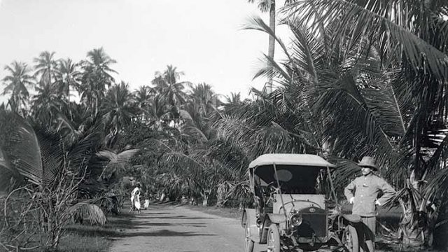 In 1982, when Michel Fortini had just enrolled in a prestigious photography school in Arles, his grandfather Luc Franceschi took him to Centuri, a seaside village in Corsica, where he gifted him an attic-full of neatly stacked glass negatives. These were visual dispatches of the travels and everyday life of their ancestor Mathieu Micheli, who lived in the erstwhile French colony of Pondicherry in 1910. The pictures are enthusiastic documents of a quotidian reality, not so different from what a contemporary Micheli would post on a social networking site. All the portraits of him show Micheli consistently smartly hatted-and-suited, regally borne aloft a hand-pulled rickshaw by a sinewy native, or standing smartly beside his motorcar on the street. There are also numerous pictures of life in the colony: of processions streaming down the street, of the locals gathered before their huts, of dockworkers stacking cargo by the sea.