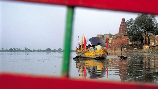 The whole land is defined by Krishna’s mythology. Mathura, where Krishna was born; Gokul, across the Yamuna from Mathura, where he was taken for safekeeping with foster-parents Nanda and Yashoda; Vrindavan, where he spent his most ras-drenched years, loving and being loved by Radha and the gopis, playing the inexorably magnetic tunes of his flute; Govardhan, the hill he lifted on his finger for seven days to save the people of Braj from Indra’s wrath; Barsana, the village of Radha; and close to it, Nandagaon, Nanda’s village.
