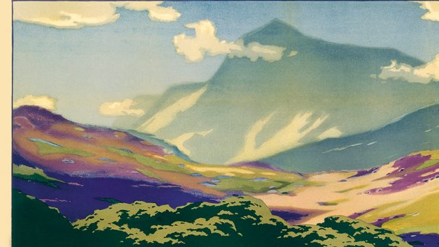 Take this gorgeous poster of the Great Western Railway (GWR) describing the charms of the Welsh landscape. Featured here is the epic profile of the mountain Cadair Idris and the Afon Mawddach lake in the southern end of the Snowdonia National Park. An old branch line of the GWR used to run from Ruabon to the seaside resort of Barmouth, bringing weekend tourists to this area. Today, that train line is a 13-km cycle trail managed by the Snowdonia National Park Authority.
