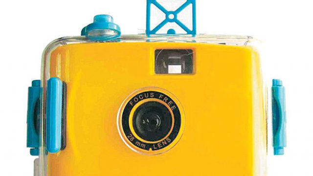 Take pictures underwater with this bright yellow 35mm daylight camera