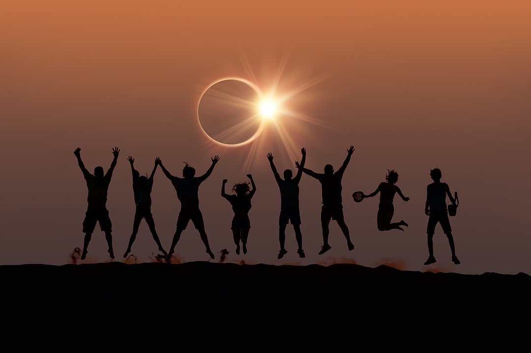 Friends captured in silhouette during a solar eclipse Photo: Shutterstock