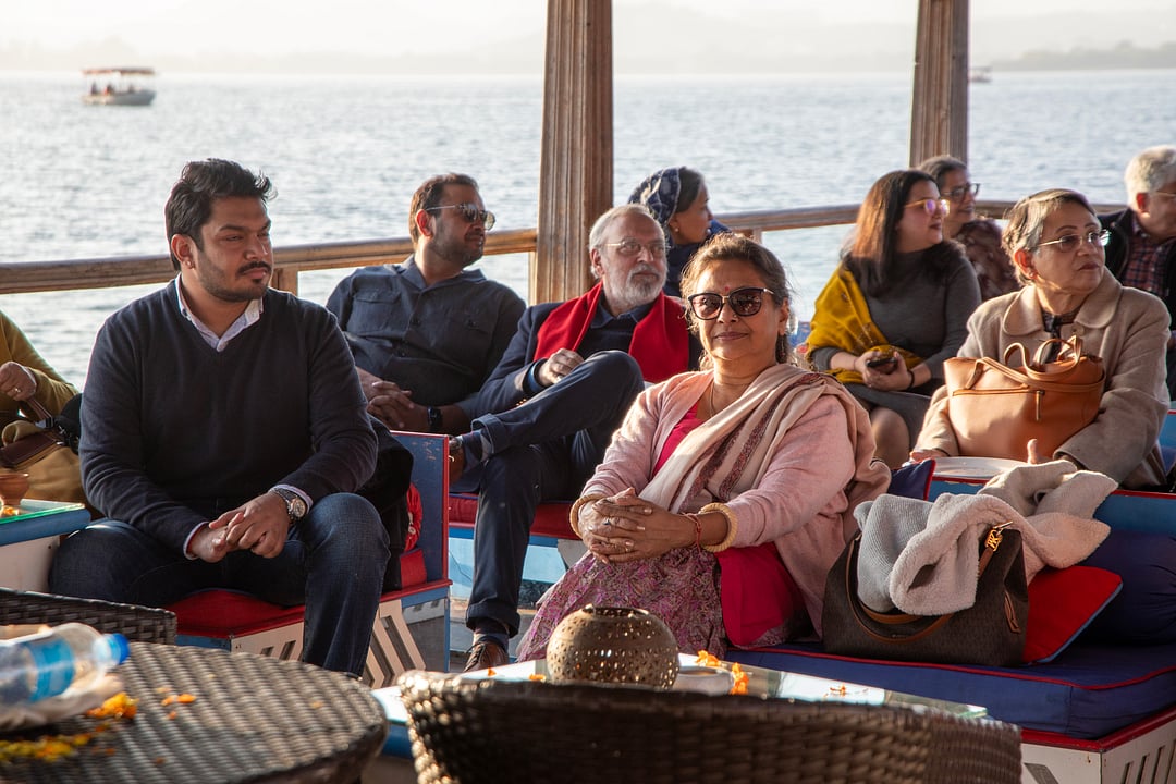 Sushmita Singha (center) sits at the Udaipur Tales 2024 event Photo: Q