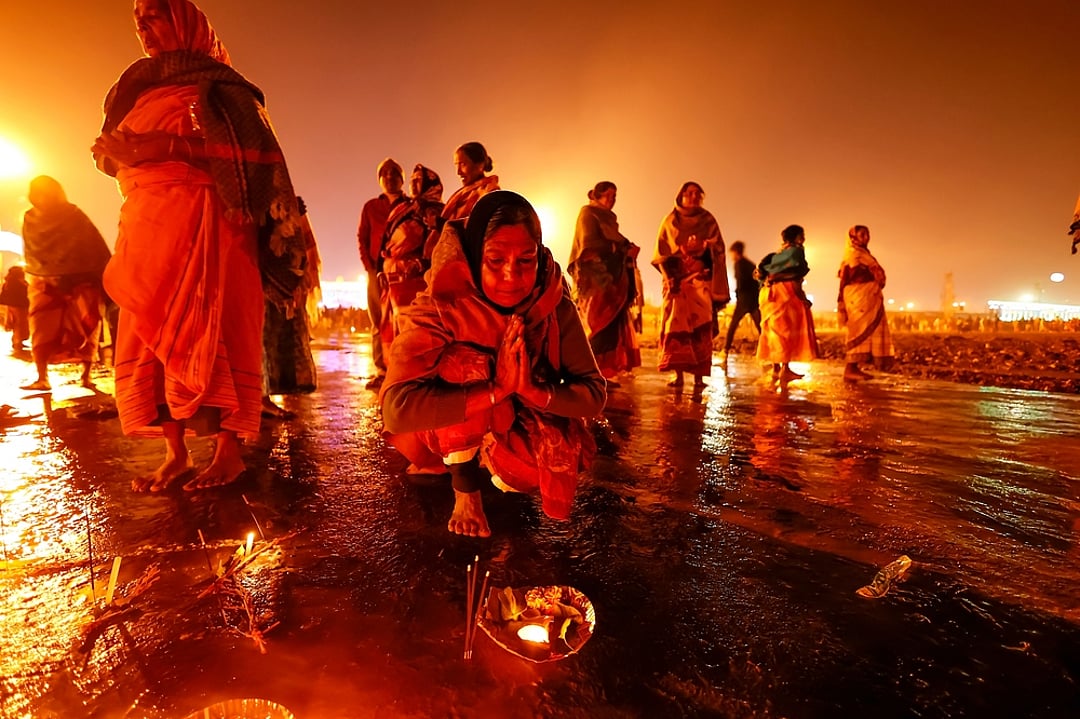 Evening prayer at Gangasagar in West Bengal, during the Gangasagar Mela Photo: Itiprithul/Shutterstock