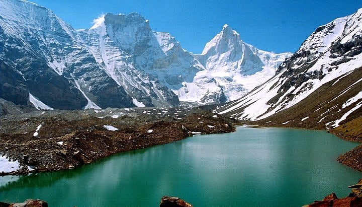 The Khagbhusandi Lake, also known as Kagbhusandi Tal, is an emerald-green lake positioned at an elevation of 5,230 meters in close proximity to Kankul Pass