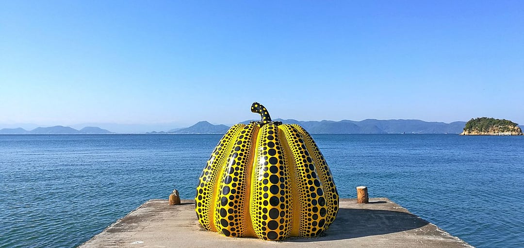 A Yayoi Kusama pumpkin greets you as your ferry docks into the harbour of Japan's Naoshima Art Island Photo: Shutterstock